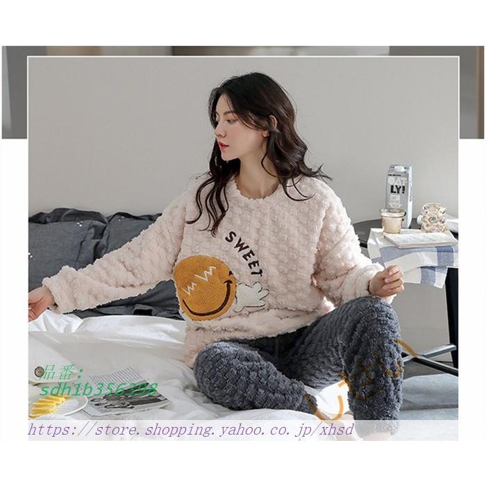 ルームウェア 上下セット レディース パジャマ マイクロファイバー 厚手 ゆったり 長袖 可愛い 冬部屋着 長ズボン 激安店舗